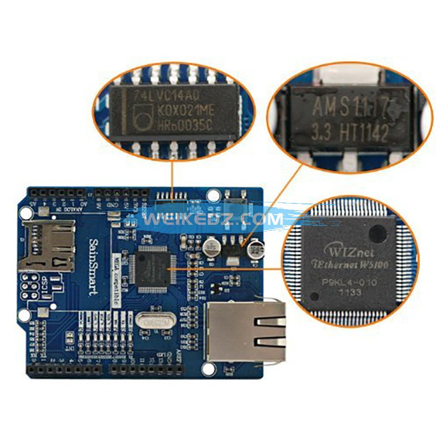 Ethernet W5100网络扩展模块,可以使Arduino成为简单的Web服务器或者通过网络控制读写Arduino的数字和模拟接口等网络应用。可直接使用IDE中的Ethernet库文件便可实现一个简单Web服务器。